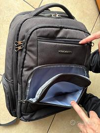 Zaino Lavoro KROSER porta PC. Impermeabile cordura e tessuto con tasche infinite e porta Pc imbottito. All’interno ha il vano per powerbank con presa USB esterna alla zaino per collegare o caricare telefono .Vendo perché azienda me ne ha fornito duplicato. Prezzo affare no perditempo