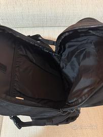 Zaino assolutamente nuovo super capiente vari scompartimenti . Nero super solido e fatto benissimo super resistente..con imbottitura dietro lo schienale..