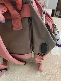 zaino Lovevook donna multifunzione, impermeabile . Porta PC. 17 pollici. Antifurto. ideale anche per viaggiare è fornito di bretelle posteriore per fissarlo al manico del trolley o della valigia . tasche laterali elastiche per contenere bottiglie . dimensioni 31 x 14 x 43. molto capiente. 5 tasche esterne . 7 tasche interne . cavo ricarica USB . spallacci imbottiti e regolabili.