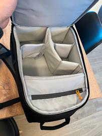 Vendo zaino fotografico usato pochissime volte pari al nuovo. Lo zaino si presta bene al trasporto di lenti anche di grosso calibro (300 f2.8) con il corpo macchina ci sta