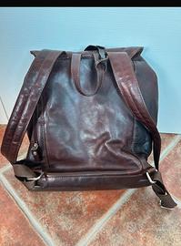 Zaino classico in pelle design a sacca con patta 15" in colore Marrone, realizzato in morbida pelle di vitello pieno fiore. L'esterno frontale è attrezzato con un capiente tascone chiuso con una zip che consente d’accedere rapidamente a oggetti di uso frequente. L’esterno posteriore dietro ha una pratica zip verticale. L'interno è attrezzato con una ulteriore tasca zip e un taschino di facile accesso per riporre un cellulare od un portafoglio. Gli spallacci sono interamente di pelle, imbottiti con morbida spugna per aumentarne il comfort. Lo zaino è adatto al trasporto di MacBook fino a 15".