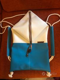 Ciao, sono Nicola. Oggi ti propongo l'acquisto di questo zaino Ushbag in ecopelle dalle forme originali e non convenzionali. Fatto per persone che vogliono distinguersi con stile, esso può contenere tutto ciò di cui hai bisogno per la tua creatività. Infatti le sue particolari forme non ne compromettono la funzionalità e la capienza: è largo 30,5cm ed alto 50cm. Ha corde in cotone, passanti in pelle, bottone in legno, fodera in cotone, zip pressofusa. Lo vendo nuovo, ancora imballato, per 79Euro