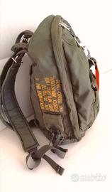 Zaino tattico modello aeronautico. Verde oliva. Materiale nylon non impermeabile. Tasca frontale, piccola tasca laterale e piccola tasca interna. Presenta piccola scucitura riparabile alla cerniera tasca anteriore.