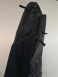 Nero con logo Milan rosso e Puma nero a contrasto. Scomparto principale con zip. 2 tasche frontali con zip e scomparto a rete laterale.