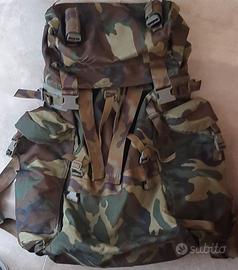 VENDO ZAINO A SACCO, ORIGINALE MILITARE MIMETICO (CAMOUFLAGE ) MIS 75 x 38 x PROFONDITA’ 17 CM + VANO SUPERIORE CON CERNIERA + NR 2 TASCHE LATERALI PROFONDE 38 x 10 x PROFONDITA’ 10 CM + SOSTEGNO INTERO PER LA SCHIENA .