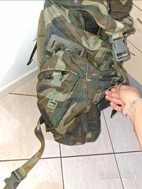 Vendo due zaini originali dell'esercito italiano. Possono essere usati insieme o anche separatamente. Capienza totale 100 litri. Il grande ha un sostegno per la schiena e cintura lombare. 4 tasche per il grande, 1 per il piccolo. Nom ci sono rotture o cerniere difettose. Super resistenti, con buona impermeabilità. Ideali per escursioni, alpinismo, trekking e attività sportive.