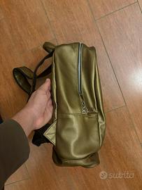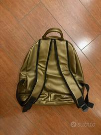 🇮🇹 vendo zaino in effetto pelle mnml haute couture colore oro con stampa frontale e zip, l’articolo è in ottimo stato e presenta numerosi dettagli.