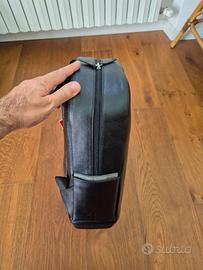 Zaino nuovo Moleskine Collezione Classic in pelle nera, con protezioni di imballo originali e cartellino. Mai usato.