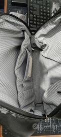 Il materiale in simil pelle mostra segni di usura superficiali dovuti al normale utilizzo nel tempo (visibili in foto), che non compromettono la funzionalità dello zaino ma sono da considerare a livello estetico.