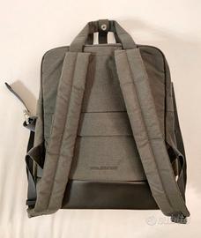 Zaino Moleskine in tessuto grigio antracite, ottime condizioni, con vari scomparti interni ed esterni, cm 36 (H) x cm 34 (L) x cm 10 (P), peso 660 grammi