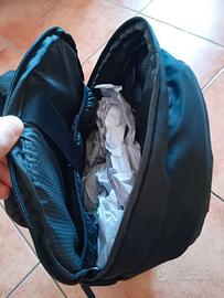 Numerose tasche interne, frontali e laterali. Molto morbido sulla schiena. Tessuto idroresistente.