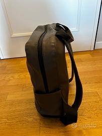 Dotato di scomparti e tasche, dimensioni 32 X 42 X 11 cm , colore mud (fango) , materiale pelle sintetica. Sono presenti dei segni di usura come da foto(manca una linguetta della zia esterna)