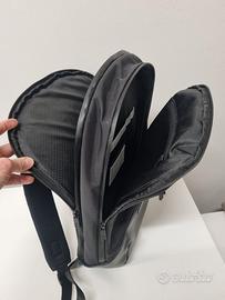 Piccolo e sottile (dimensioni 31 x 47 x 13 cm), è dotato di 2 scomparti per separare il laptop da oggetti personali, spallacci imbottiti regolabili e retro con rete traspirante e cerniere resistenti all'acqua.
