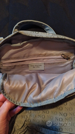 Zaino in tessuto monospalla regolabile di colore grigio cangiante. Ottime condizioni. Tasca interna ed esterna con chiusura a cerniera.
