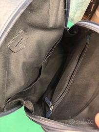 Zaino montblanc sartorial blu taglia grande con 3 tasche. Lo zaino ha solo un piccolo difetto sotto la maniglia, dove è consumato come si vede in foto. Non compromette utilizzo e non si vede dall’esterno, poiche la parte superiore è integra. Per il resto è perfetto, ha anche sacchetta antipioggia. Posso mandare altre foto. Vendo per inutilizzo.