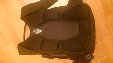 Zaino con porta casco realizzato in Cordura 1000 La schiena è imbottita, così come gli spallacci regolabili. tasca superiore in tessuto antigraffio portaocchiali, una tasca frontale con porta cellulare, una tasca in rete interna ed una tasca alla base da cui è estraibile un porta casco agganciabile allo zaino. vano principale estensibile e dotato di cerniere waterproof e cinghie laterali. La coperta antipioggia può essere riposta in un´apposita tasca laterale con sacco interno Usato pochissimo, ottime condizioni