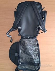 Vendo zaino multitasche per moto con calamita per aderenza al serbatoio. Copri zaino impermeabile integrato. La parte con la calamita si toglie e resta uno zaino.