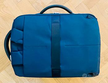 Una borsa urbana, perfetta da utilizzare nei mezzi di trasporto o in bici, dotata di spallacci nascosti sullo schienale che all'occorrenza trasformano la borsa in zaino.