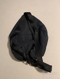 Zaino nero in tessuto tecnico impermeabile Si può portare a tracolla, a spalla e dietro le spalle ( come zainetto ) Dimensioni 40x30x30