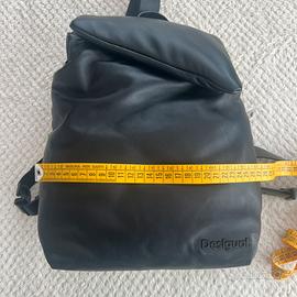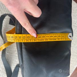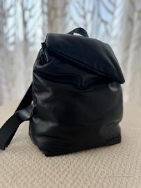 Zaino medio imbottito 100% pelle, con tasche posteriori e chiusura con cerniera e patta magnetica.