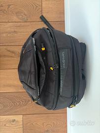 Zaino modello Locus Eco N1 24L Laptop Backpack in Black Materiale: 100% poliestere Porta PC 15.4'' Indossato: spallacci Chiusura: a zip, cerniere tutte funzionanti Portapenne interne Tasche laterali Dettagli gialli Fascia sullo schienale per inserire lo zaino sui badtoni della valigia Peso:0.8 kg Dimensioni: 42 (H) x 30 (L) x 20 (W) cm