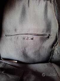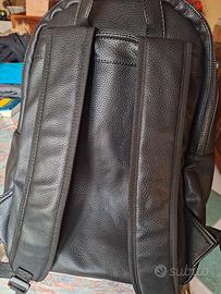 Zaino nero da uomo in similpelle in ottime condizioni. 1 tasca esterna con cerniera e 1 con bottoni a pressione. tasca interna con cerniera e 2 scomparti per cellulare, portafoglio, ecc.