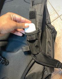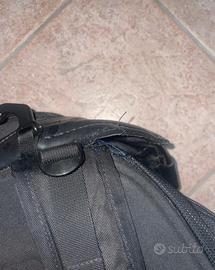 Presenta segni di utilizzo visibili. Lo spallaccio sinistro è parzialmente danneggiato, ma lo zaino resta comunque utilizzabile. Non è nuovo.