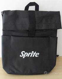 Zaino Sprite Originale - NUOVO mai usato ed ancora imballato-Colore Nero con scritta bianca, con fibbie e lampo nere- Vendo ad Euro 20 - Preferisco ritiro diretto- Astenersi perditempo -Adatto per scuola, sport, campeggio e tempo libero. Le dimensioni sono : H cm 54 totale e 42 richiuso - Largo 27 e Profondo 10. è realizzato in ecopelle, con scomparto interno separato, e d ha 3 scomparti separati esterni, con chiusura lampo, 1 centrale e 2 laterali