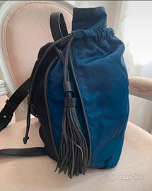 Zaino in tessuto tecnico con tracolla in pelle, multitasche con logo a vista, bretelle regolabili, condizioni ottime, segni d uso all interno vedi foto