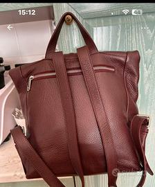 Ampio zaino in pelle morbidissima color bordeaux rifiniture viola
