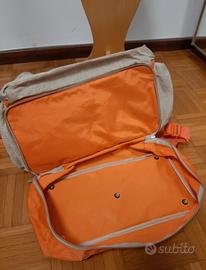 É un borsone molto capiente (circa 30/40 litri) con due ampie tasche laterali, un'ampia tasca sul davanti e fondo rigido portascarpe.