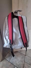 Zaino per racchette Padelin buone condizioni, colore bianco e rosso. Dimensioni 55 cm altezza, 40 cm larghezza, 35 cm profondità. Prezzo 20 euro Spese di consegna a carico dall'acquirente