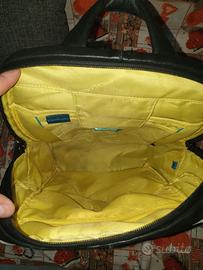 Zaino porta PC/iPad® Urban 14.0 Piquadro, accessorio casual realizzato interamente in vera pelle, con esterno completo di porta bottiglia, porta ombrello, tasca organizzata con portapenne e porta cellulare, taschino frontale, fascetta per cuffie, fascia per trolley.