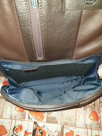 Zaino porta PC/Tablet Urban 14.0 Piquadro, accessorio casual realizzato interamente in vera pelle, con esterno completo di porta bottiglia, porta ombrello, tasca organizzata con portapenne e porta cellulare, taschino frontale, fascetta per cuffie, marrone in ottime condizioni.