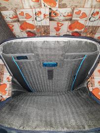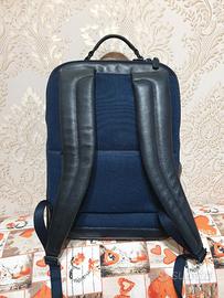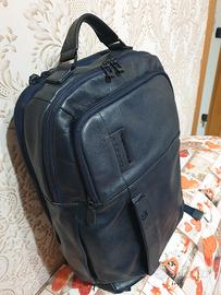 Zaino P15 Plus Large porta PC/iPad 15.6 Piquadro con accessorio business, viaggio e scuola realizzato interamente in vera pelle, colore blu, con scomparto organizzato, maniglia superiore, spallacci regolabili, portaombrello e tasche esterne, cinghia per trolley.