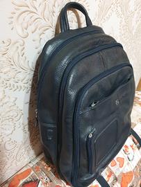 Zaino porta PC Vibe Piquadro, spazioso e funzionale accessorio uomo in vera pelle blu a tre comparti, con tasche multifinzionali. Dotato di comparto interno imbottito notebook e tablet fino a 13", spallacci imbottiti regolabili, e manichetto superiore. In ottime condizioni.
