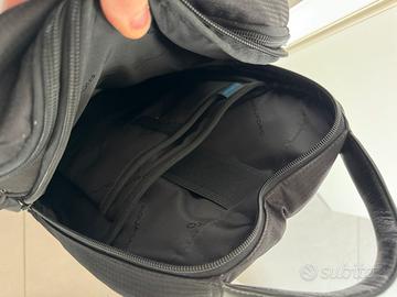 Zaino piquadro in tessuto tecnico con riporti in pelle chiuso da zip con 2 scomparti+tasche esterne. Organizzazione in testa con taschini e vano x pc 15,6''+ipad.