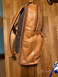 Zaino Piquadro originale in vera pelle di vitello, grande e capiente.