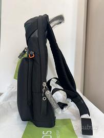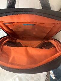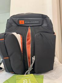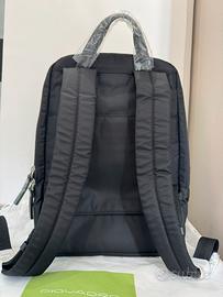 Zaino Porta PC PQ-Bios 14.0 Piquadro, nuovo con cartellino.grande e spazioso accessorio realizzato in leggero e resistente nylon Piquadro, con manichetto superiore, spallacci imbottiti e regolabili e fascetta posteriore per aggancio a trolley in pelle Piquadro. Pratiche tasche frontali con chiusura con cerniera e ampio comparto principale con interno foderato e ottima organizzazione, con tasche portapenne, portacellulare e sezione dedicata a dispositivi elettronici. Dimensioni: 27 cm Lunghezza x 38 cm alternativa x 15 cm profondità. Nuovo con cartellino .