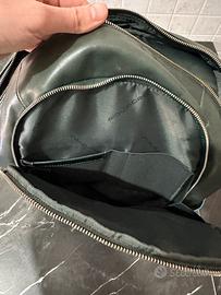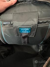 Zaino Piquadro in pelle Colore Verde scuro Normali segni di usura da uso Porta PC 14 pollici e tablet 10