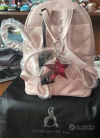 vendo zaino più portafoglio azienda l'atelier du sac completamente nuovo ancora imballato mai usato con cartellino custodia originale colore beige.