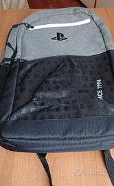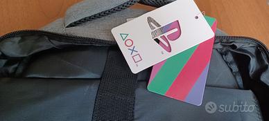 Zaino PlayStation nuovo con cartellino che ha tre scomparti interni, due tasche sui fianchi e due tasche sul davanti.