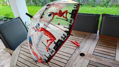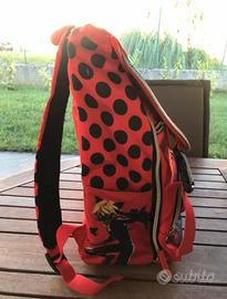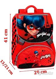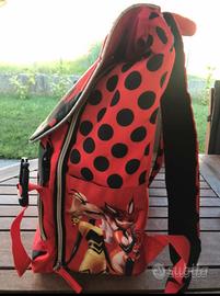 Zaino Scuola Ladybug MIRACULOUS Regolabile con Estensione Soffietto 9 cm, Chiusura Zip e Tasche laterali dimensioni 29x41hx13,5 cm, Rosso con Stampa e Logo + Portamonete in Silicone Tikki usato e in ottime condizioni + ombrello come da foto