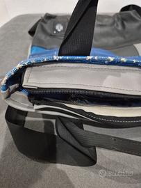 misure 42 x 35 cm capiente e comodo la parte del telone blu è un pò rovinato come si vede in foto il resto è perfetto