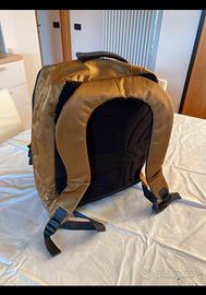 Due porta penne, un porta telefono e una taschina porta tutto, un moschettone.