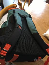 Perfetto stato , 30 litri , diverse tasche , spallacci imbottiti verde e nero Composizione: 100% poliestere Scomparto per computer portatile, Tasca per occhiali da sole foderata in felpa, Sezione bagnato/asciutto con rotolo e clip, Organizzatore dedicato per le pinne, Tasca per bottiglia da bere, Spallacci per zaino traspiranti Dimensioni: H:480mm L:330mm P:200mm Capacità: 30L