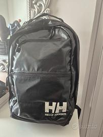 Zaino Helly Hansen in tessuto spalmato nero molto robusto e resistente con spallacci e vari scomparti chiusi da zip. Utile sia per l'ufficio che per lo sport e il tempo libero. Ottime condizioni. A parte in vendita anche il beauty case abbinato.