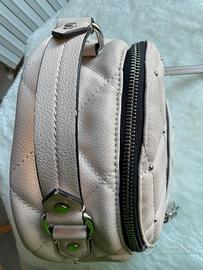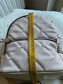 Bellissimo zaino in ecopelle rosa cipria. Design trapuntato con borchiette in metallo. Chiusura con zip. All’interno logo con la scritta Zara. Foto con misure. Utilizzato pochissimo, pari al nuovo. Perfetto x la bella stagione. Idea regalo 🎁. Zara