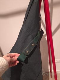 Questa borsa è un raro sac marin (borsa da marinaio) o sacca sportiva marchiata Rolex, spesso associata a gadget promozionali per eventi come l'America's Cup o collezioni vintage degli anni '80 e '90. Caratteristiche principali: Design: Presenta una chiusura a coulisse con corda bianca, una tasca esterna con cerniera e il logo Rolex con la corona ricamato in giallo. Materiale: Solitamente realizzata in robusta tela sintetica o vinile impermeabile, tipicamente nel classico colore verde scuro del brand. Funzionalità: Alcuni modelli includono una maniglia posteriore per il trasporto a spalla e un compartimento separato con cerniera sul fondo.