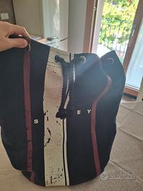 sacco/zaino sisley 100% cotone monospalla, misure 54x40 cm